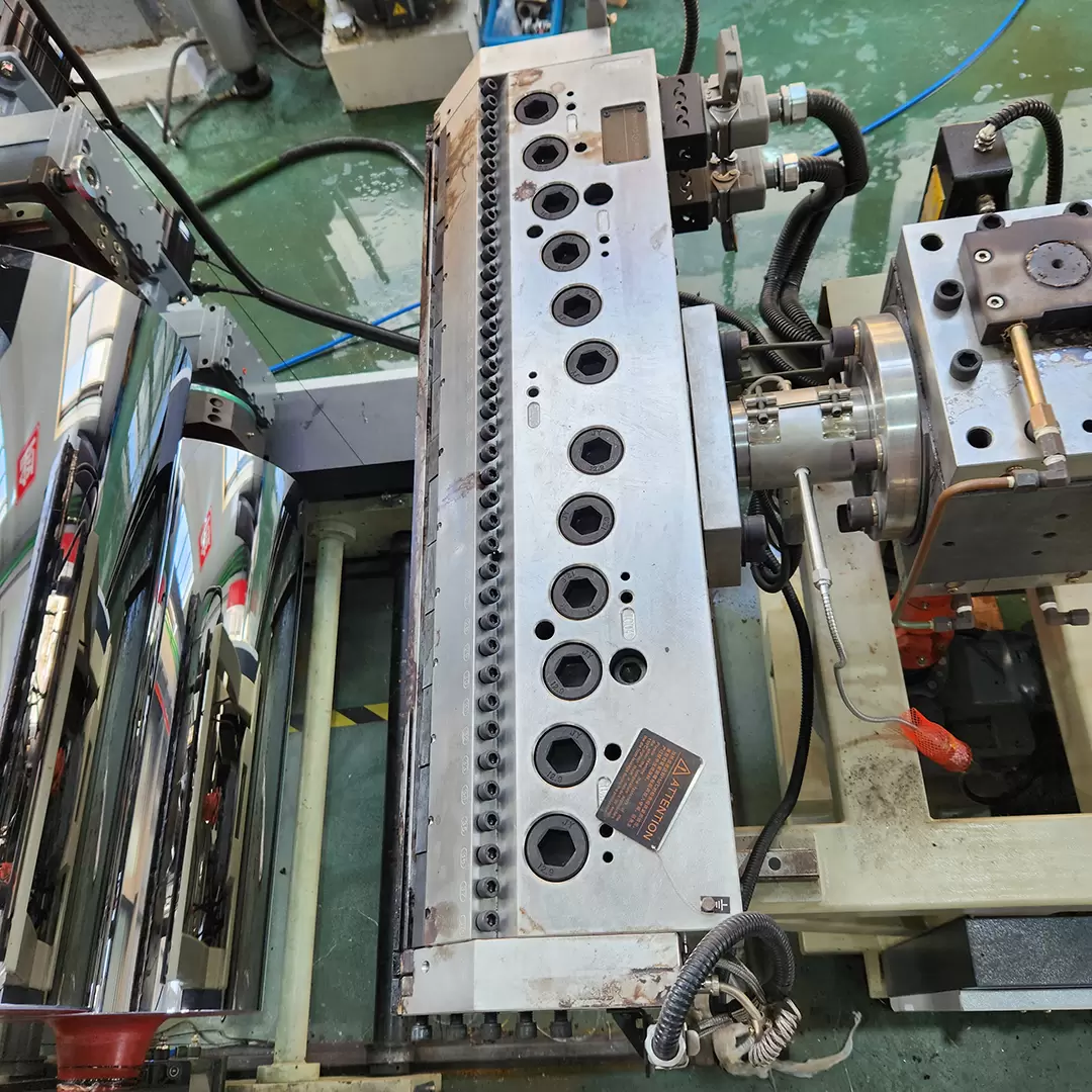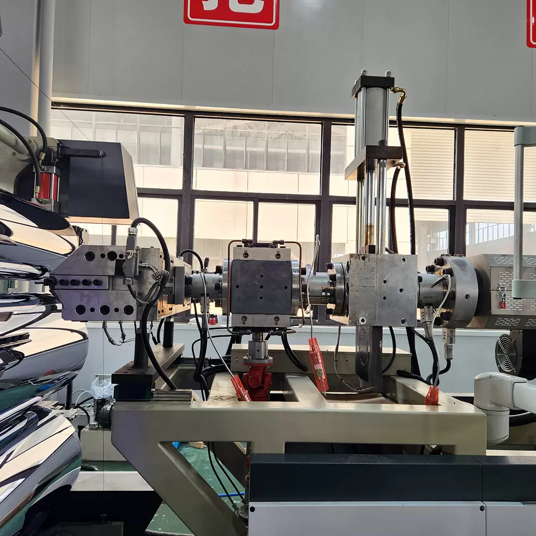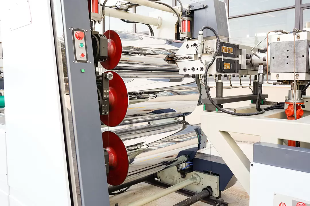 La extrusora de láminas consta de extrusión, calandrado, tracción, bobinado y otras piezas. Las principales piezas de desgaste han recibido un tratamiento especial de alta calidad y son resistentes a la corrosión y a las altas temperaturas. Las fuerzas de baja resistencia dentro del canal de extrusión de la matriz garantizan un espesor uniforme de la lámina, las ranuras espirales en los tres rodillos garantizan una refrigeración eficaz, y la sustitución de la unidad hidráulica y la instalación del cambiador de mallas son sencillas sin detener la máquina.