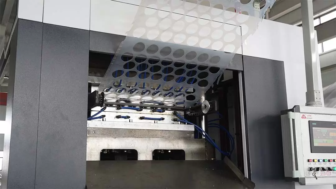 Calentamiento de láminas: Las láminas de plástico (como PET, PP, PS, etc.) se introducen en el área de calentamiento y se calientan a la temperatura de ablandamiento adecuada a través de un sistema de calentamiento eléctrico o infrarrojo.