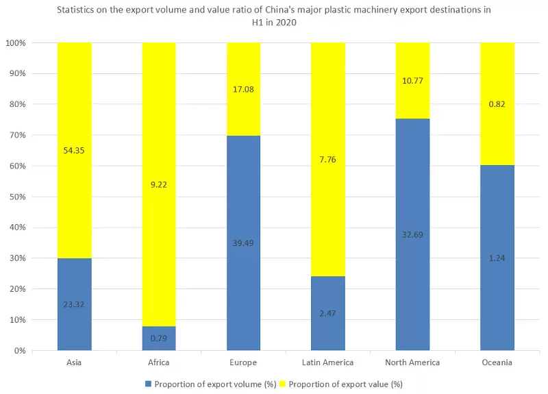Expertos relevantes analizaron que, en el futuro, las exportaciones de maquinaria para plásticos en mi país estarán dominadas por las máquinas de moldeo por inyección. Del análisis del volumen de exportación, se estima que la proporción de diversos tipos de máquinas es: 60,4% para máquinas de moldeo por inyección, 6,8% para extrusoras, 11,7% para máquinas de moldeo por soplado y 21,1% para otras máquinas para plásticos. En cuanto a los ingresos de divisas por exportaciones de maquinaria para plásticos, las máquinas de moldeo por inyección representaron el 74,1%, las extrusoras el 8,1%, las máquinas de moldeo por soplado el 8% y otras máquinas para plásticos el 9,8%.