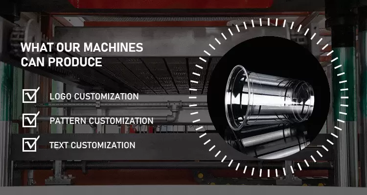Amplia gama de aplicaciones en el campo del embalaje, la alimentación, la industria electrónica, como vasos de plástico para bebidas, vasos para helado, vasos para yogur, bandejas de alimentos, cuencos, contenedores de comida rápida, industria ligera, textiles, viajes, juguetes y otros, etc.